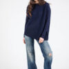 The relaxed fitting body shape is balanced with the slimmer looking jersey sleeves. Double layered neck trim with mixed jersey-shaker textures makes the crewneck sweater extra beautiful. The exaggerated rib at sleeve cuffs can be folded up, pushed up, or pulled down for various fun styling options. Outside linking details with a touch of contrasting stitch color at back shoulders, side seams, and armhole seams. Wear alone or layer over a shirt or various tees.