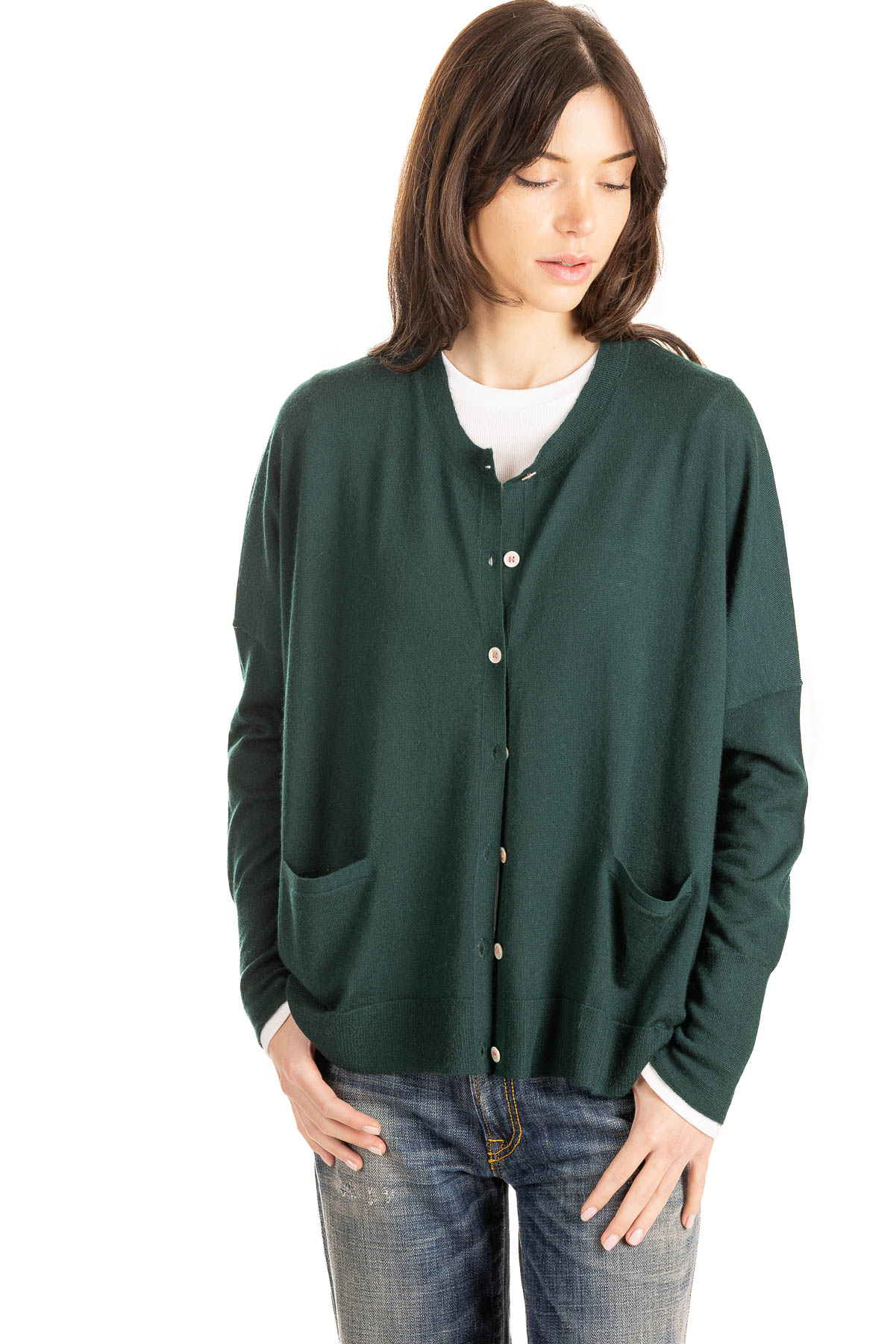 Boxy Cardigan | Worsted Cashmere | Bottle Green