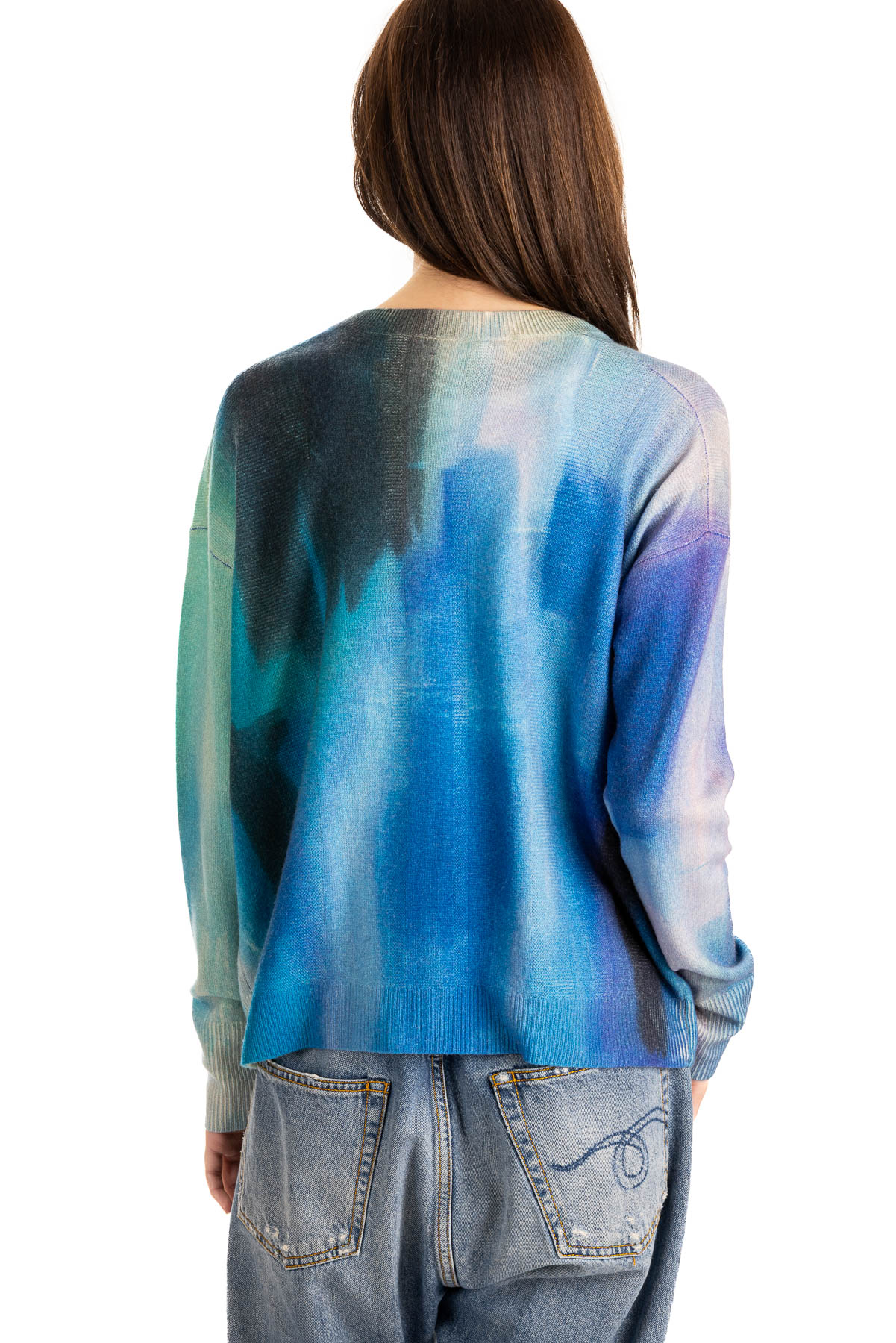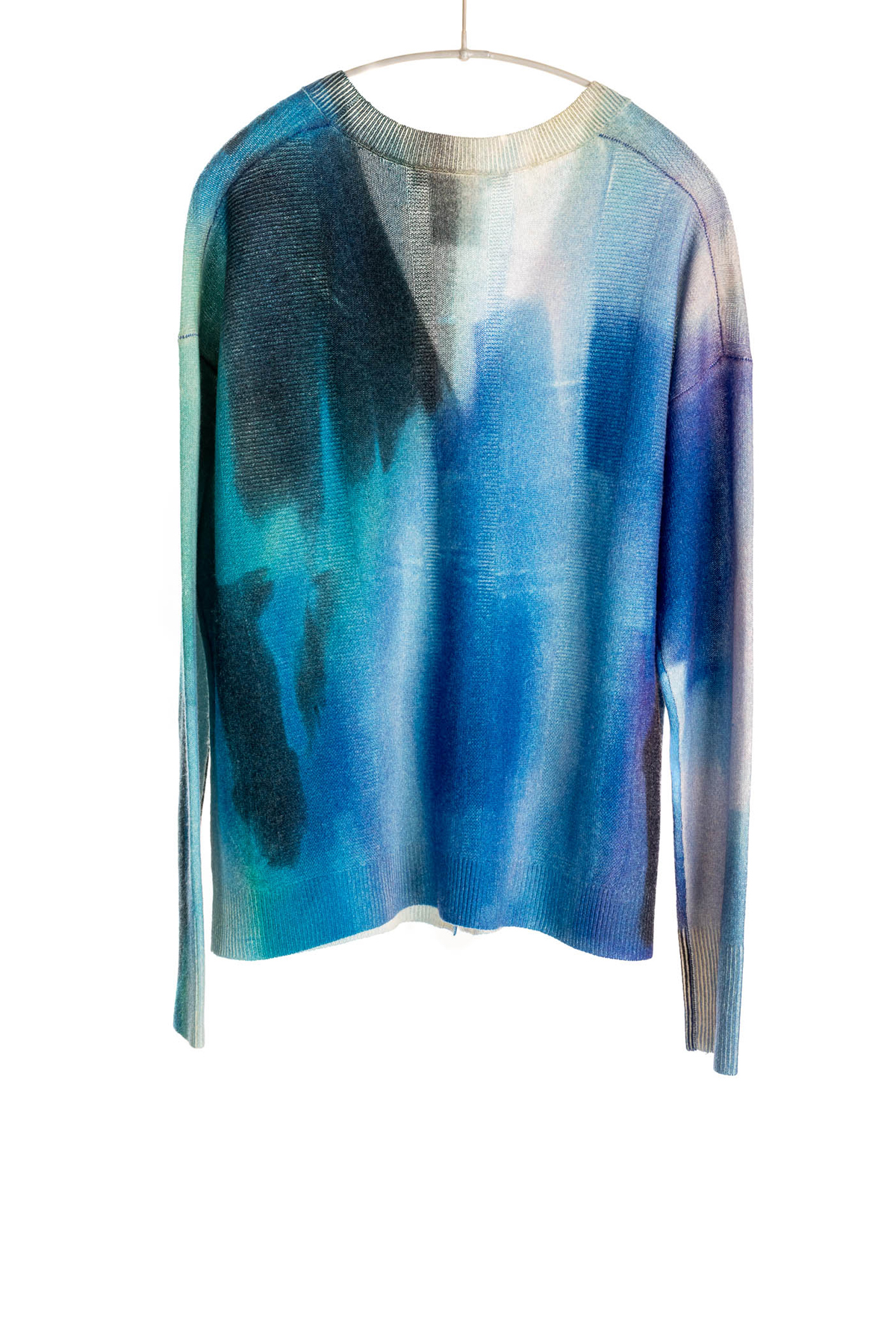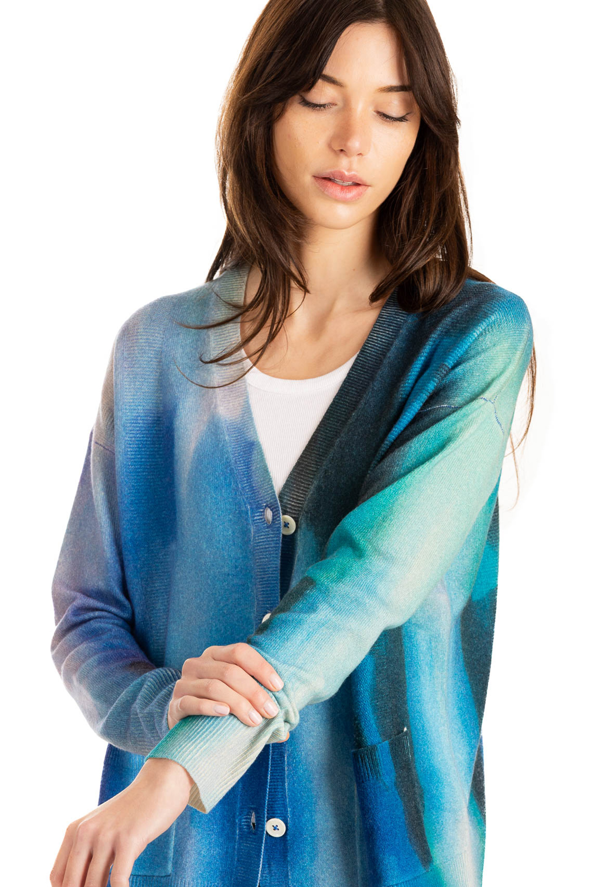 Brush Print V-Neck Cardigan | Premium Cashmere | Ocean Multi