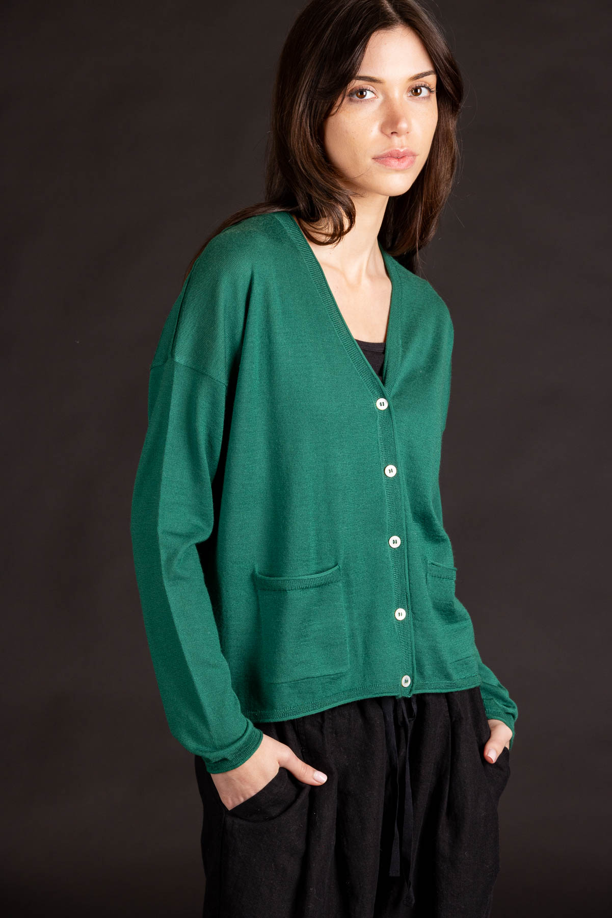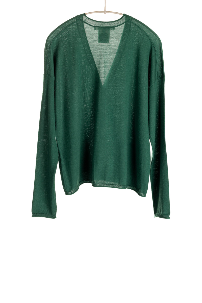 L/S V-Neck Cardigan | Worsted Cashmere | Cedar Green