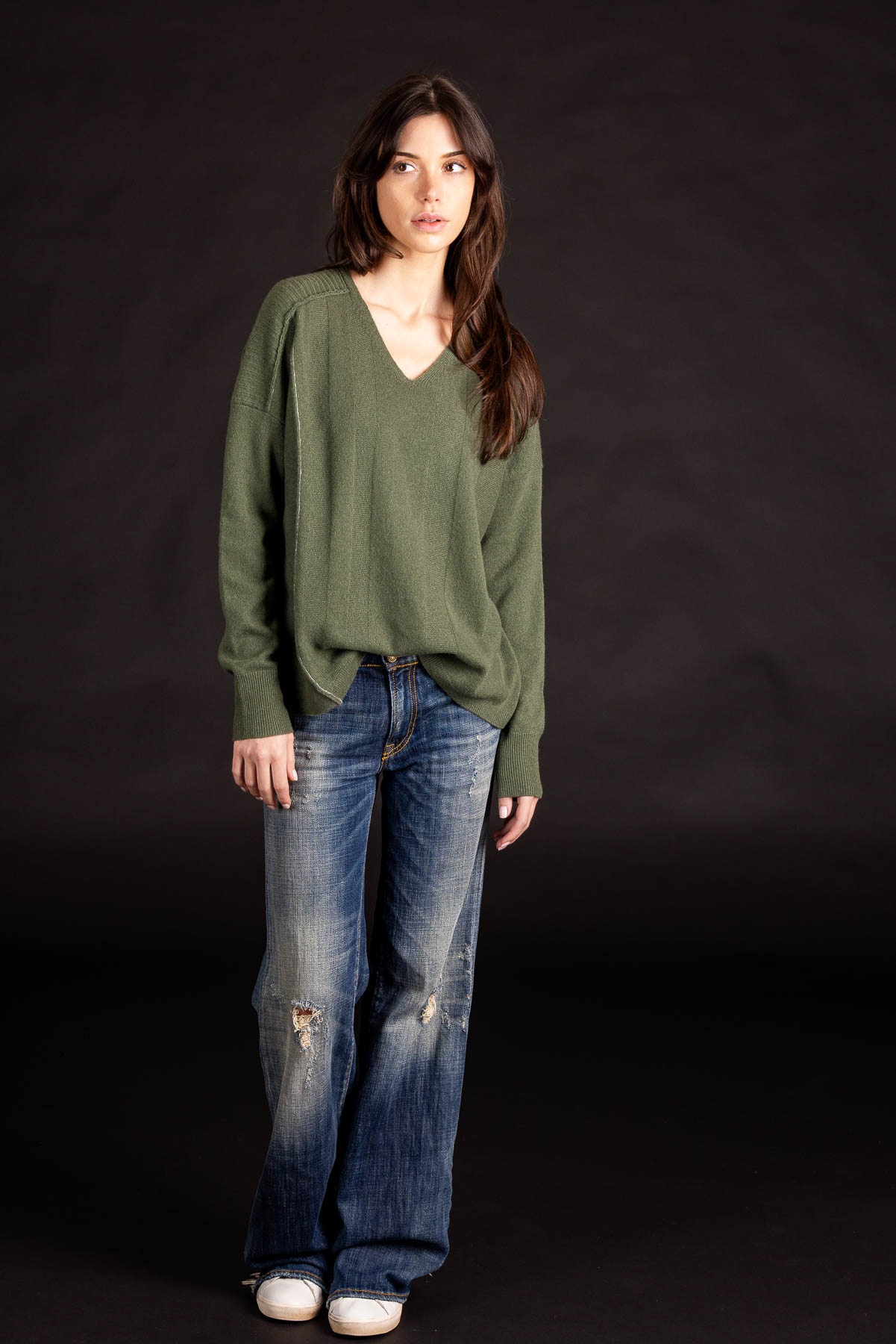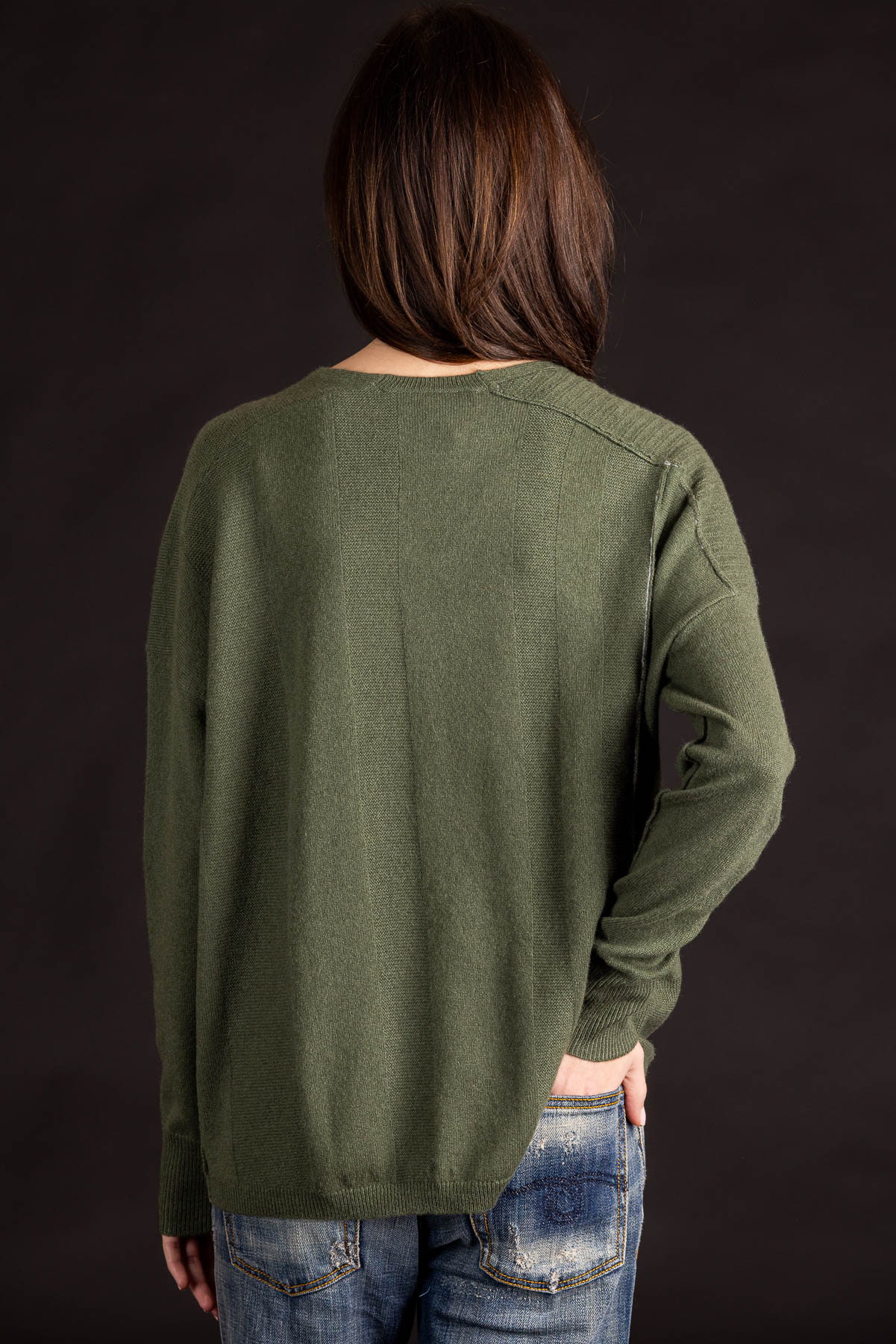 Panel V-Neck Pullover | Premium Cashmere | Army Green