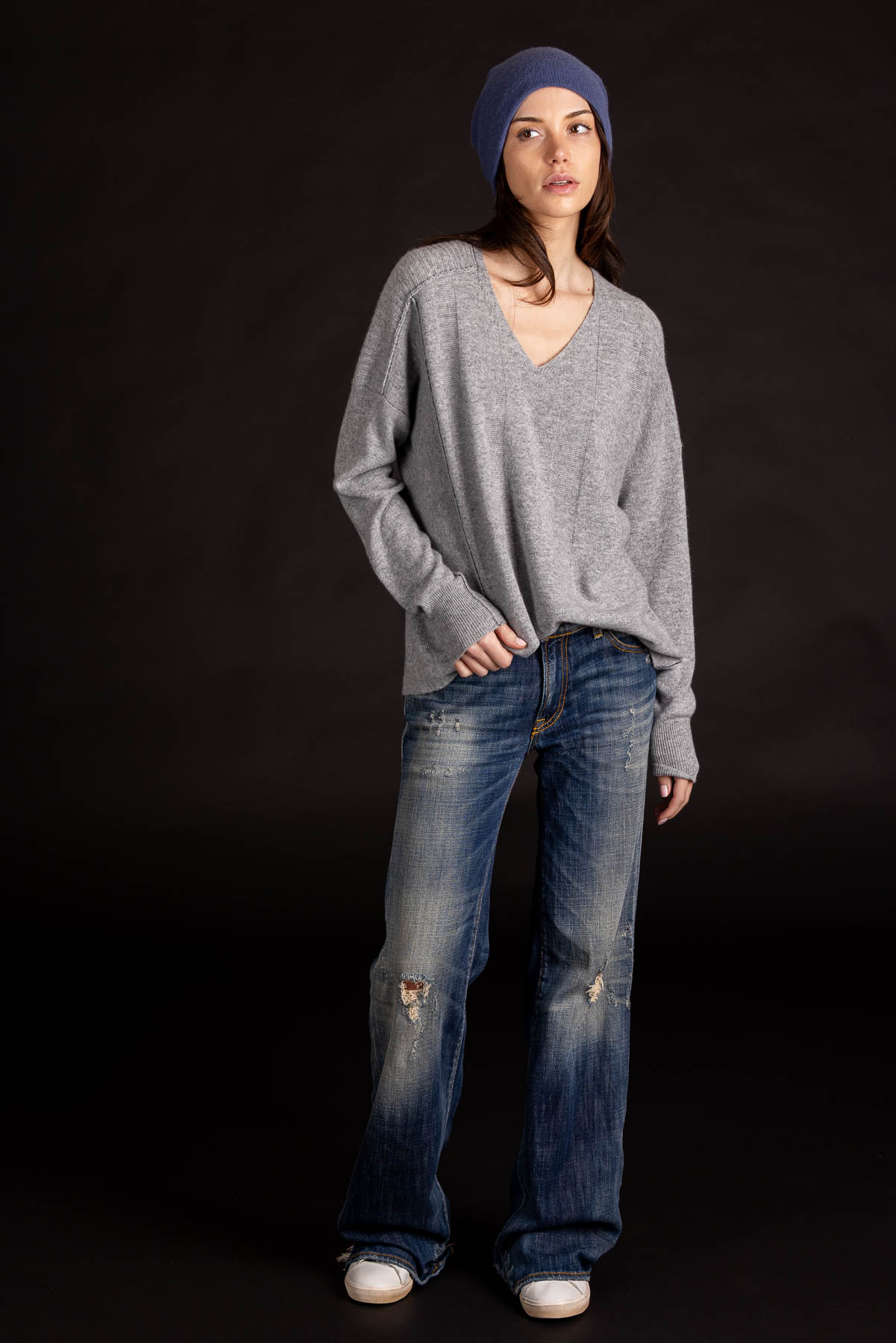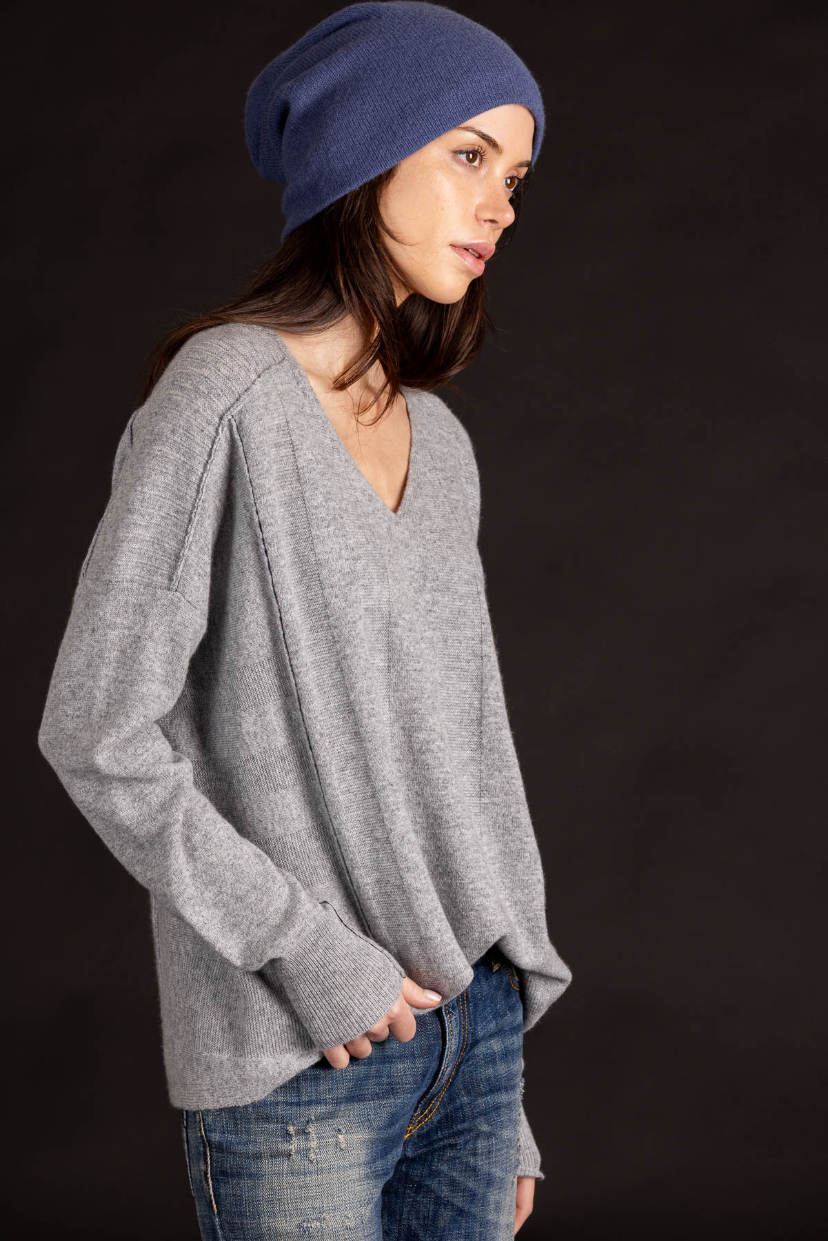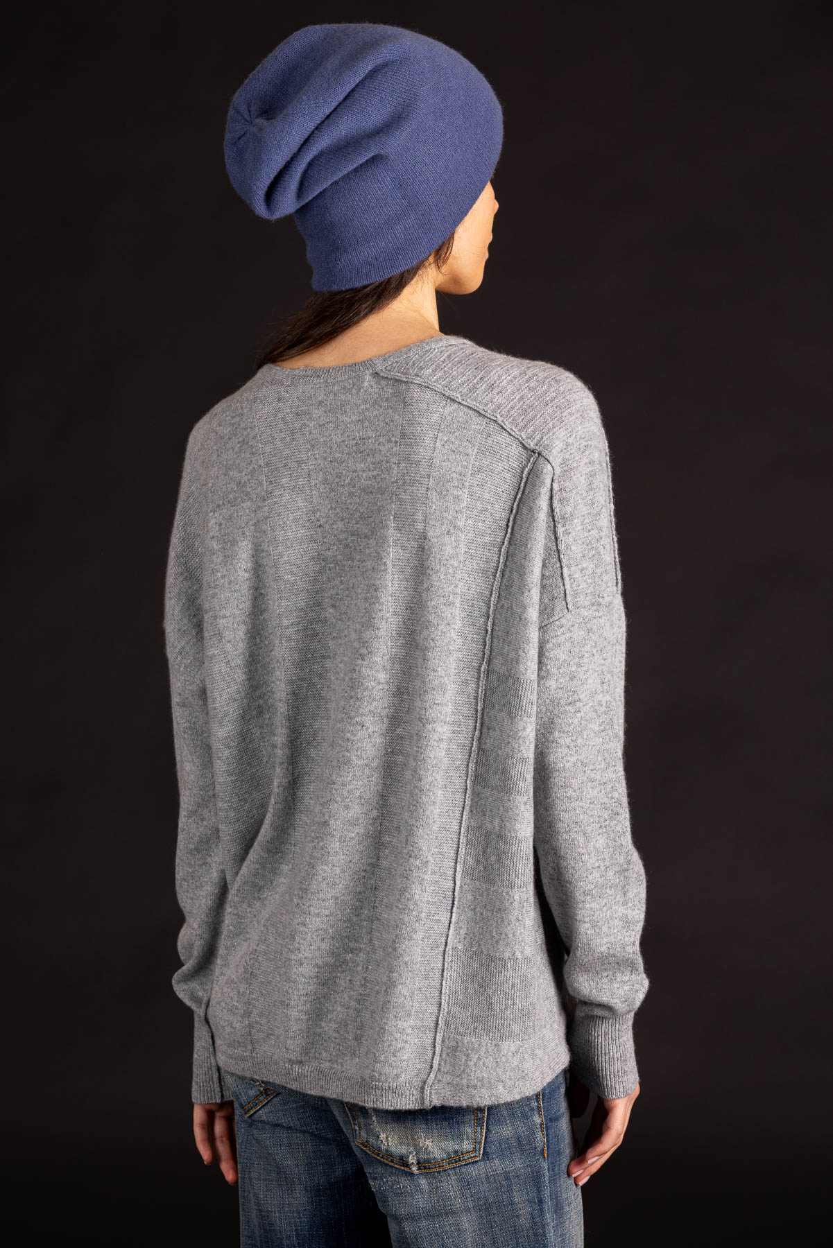 Panel V-Neck Pullover | Premium Cashmere | Med H Grey