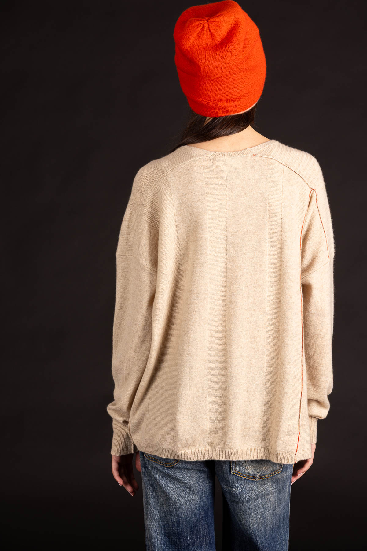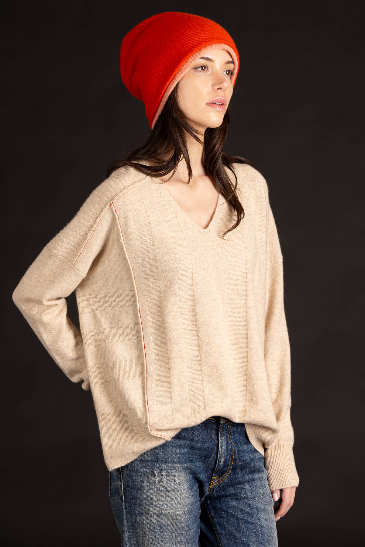 Panel V-Neck Pullover | Premium Cashmere | Oatmeal