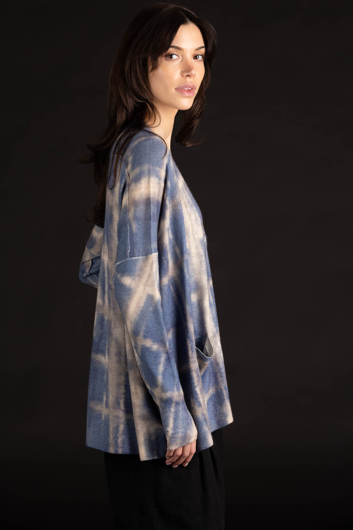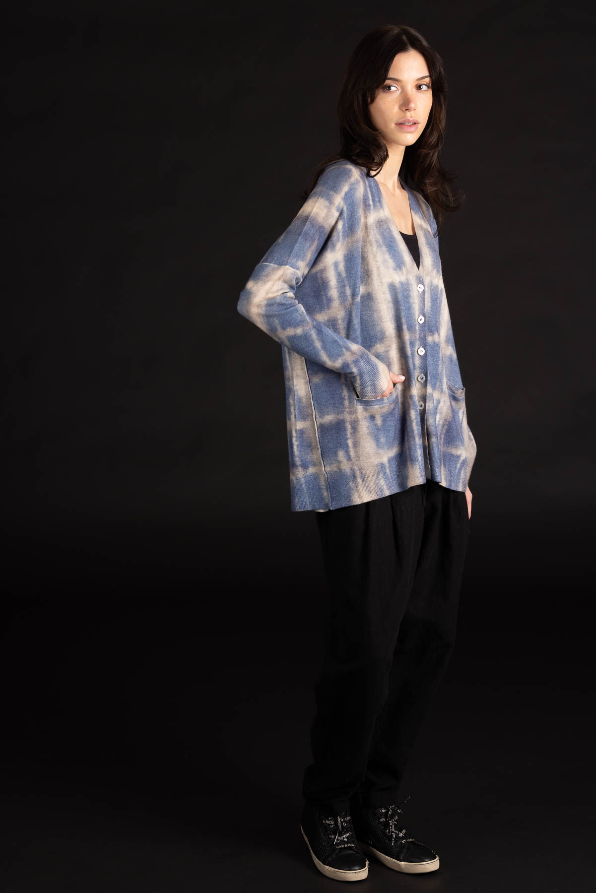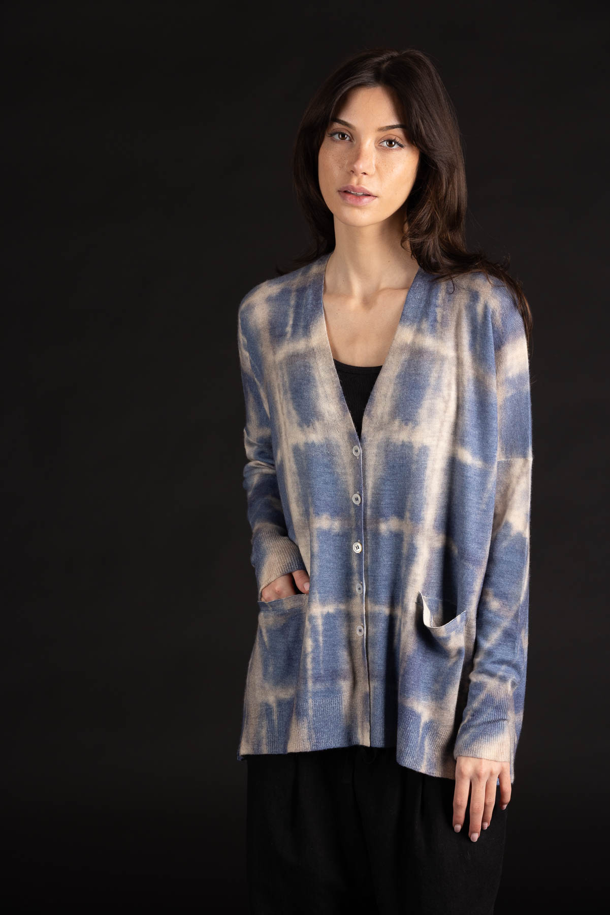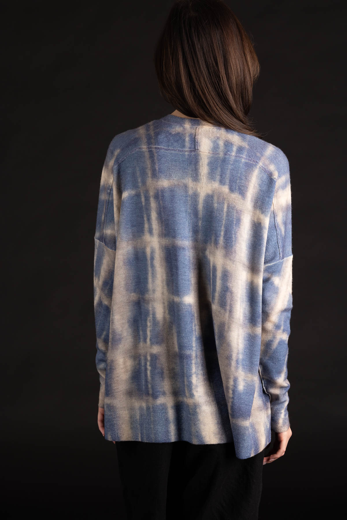Plaid V-Neck Cardigan | Worsted Cashmere | Washed Denim