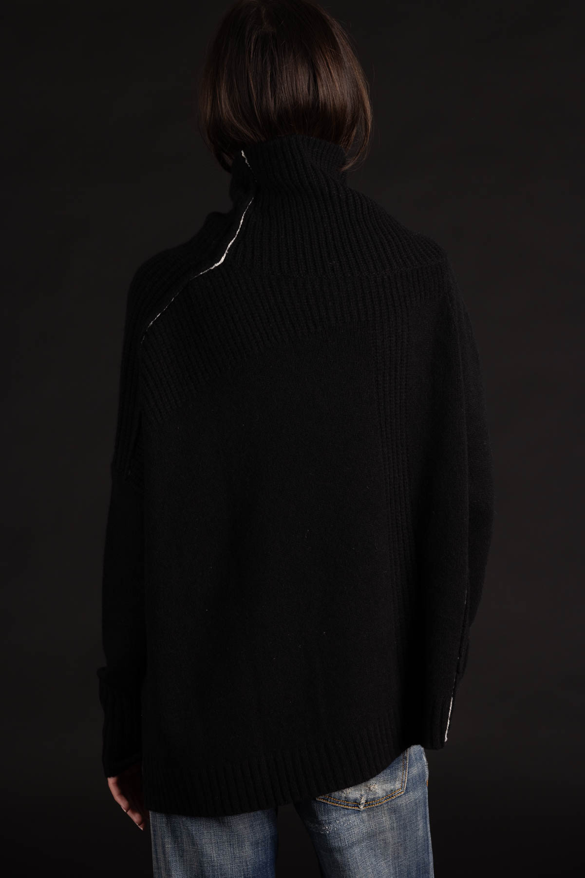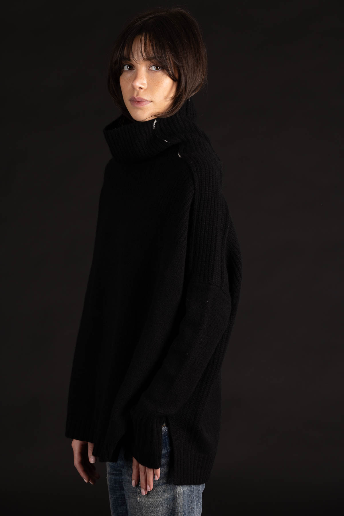 Relaxed Mock Pullover | Premium Cashmere | Black