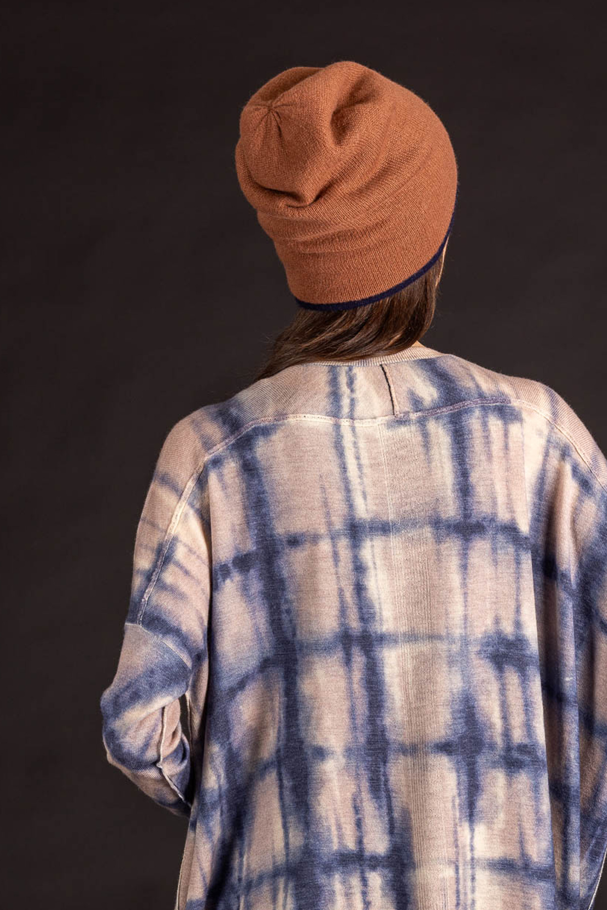 Stay warm and stylish with our double layer cashmere beanie featuring ultrachic slouchy drape. It can also be worn cuffed without the drape. Layer 2 beanies with different colors together for a fun pop-color effect with double warmth.