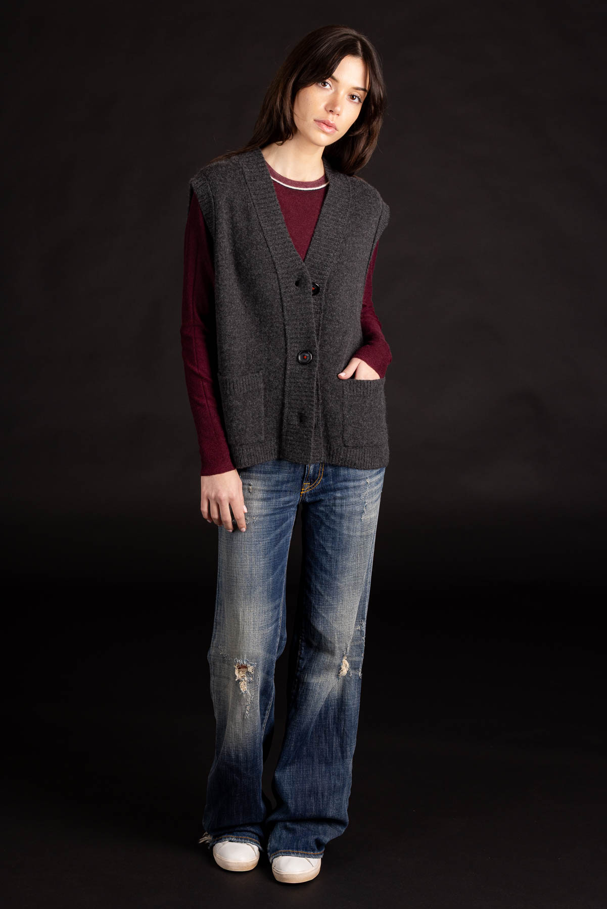 Three Button Vest | Premium Cashmere | Charcoal