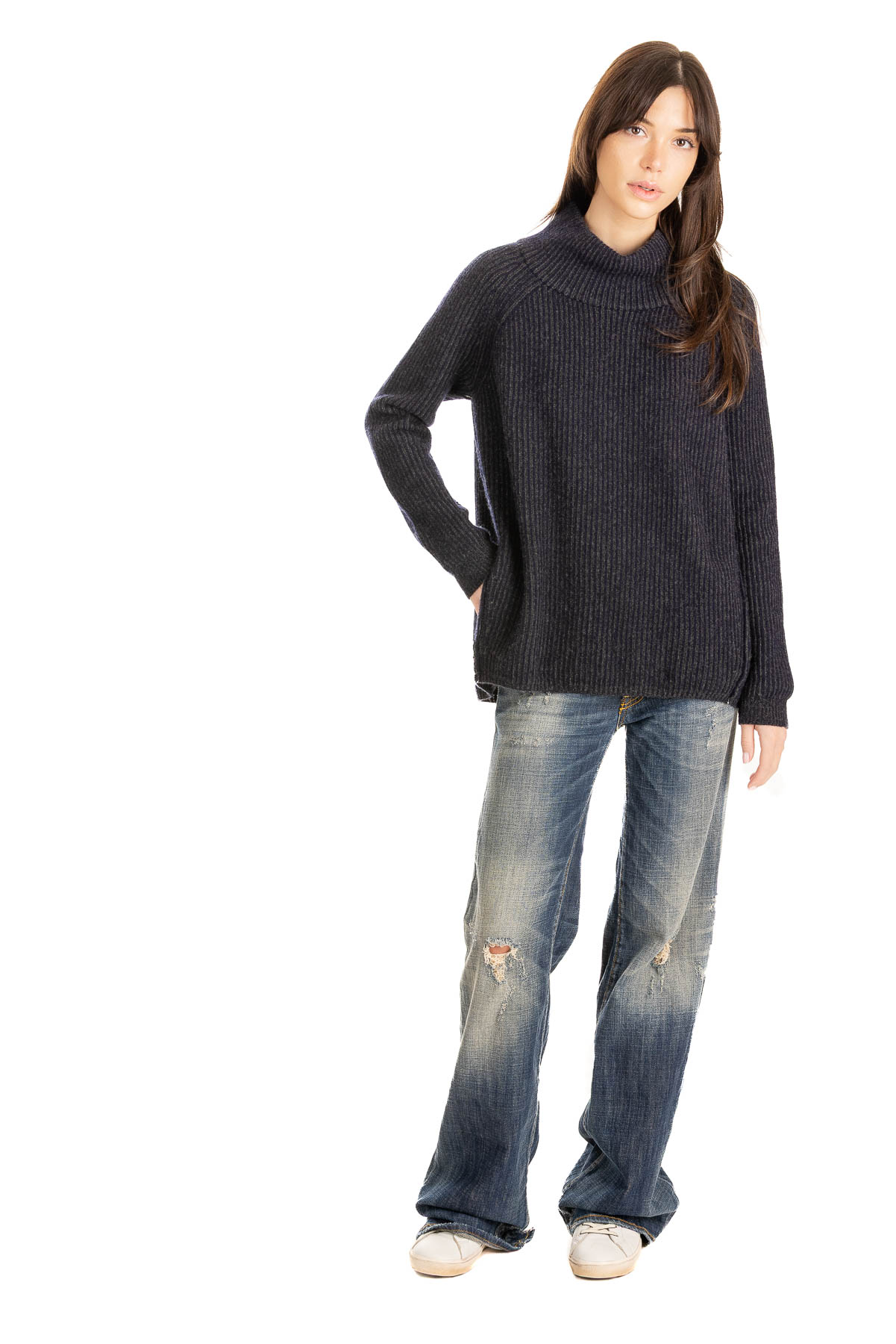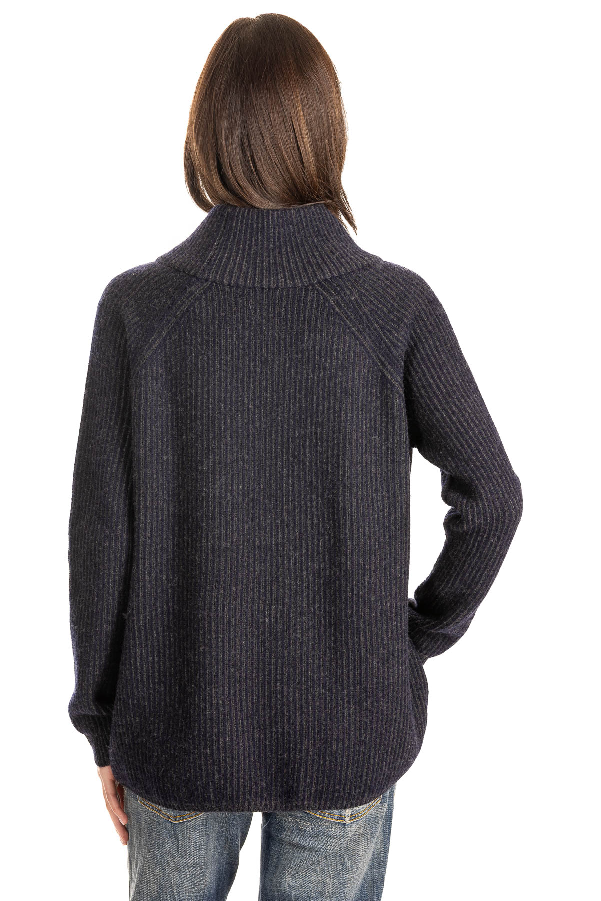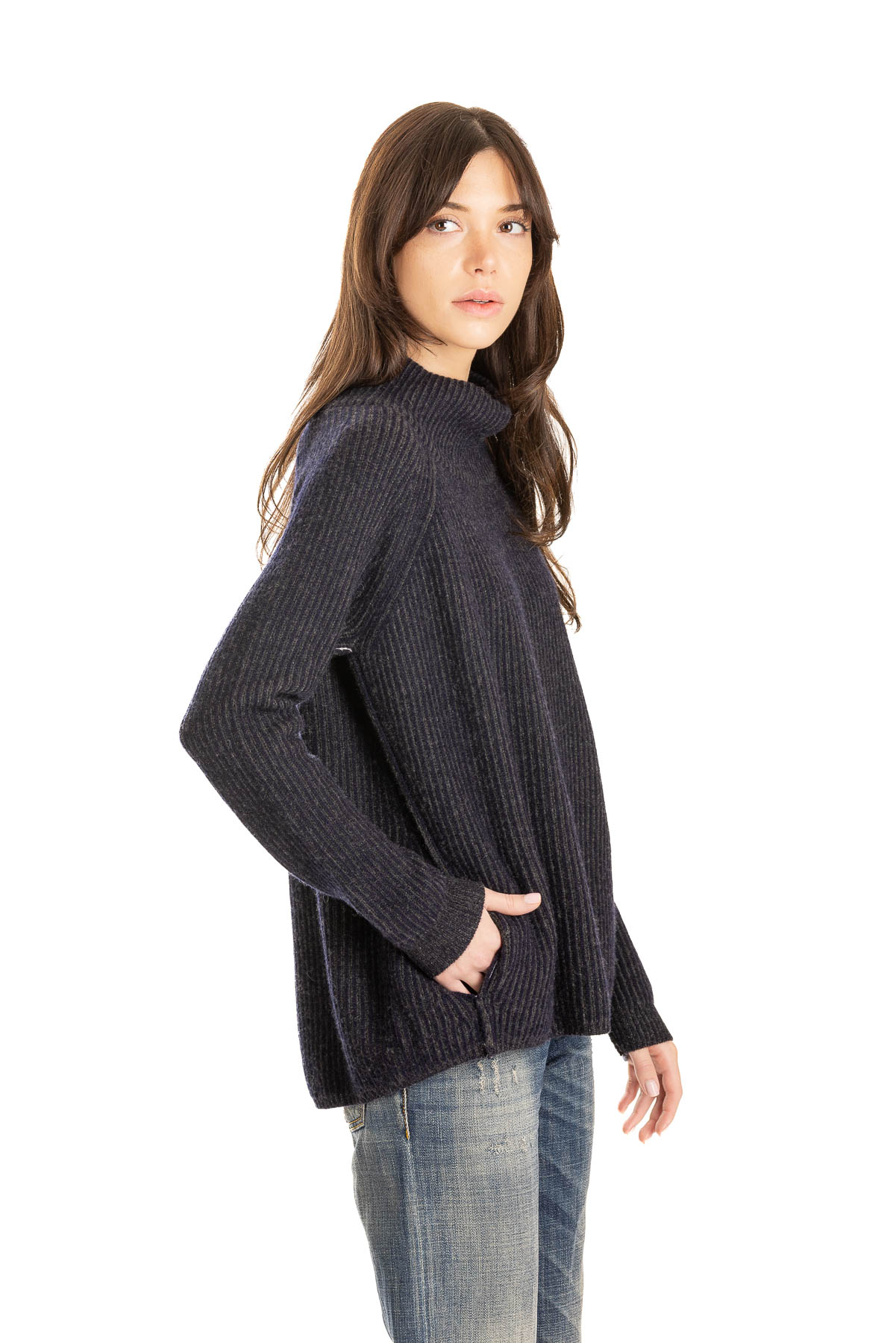 Two-Tone Mock Pullover | Premium Cashmere | Navy/Charcoal